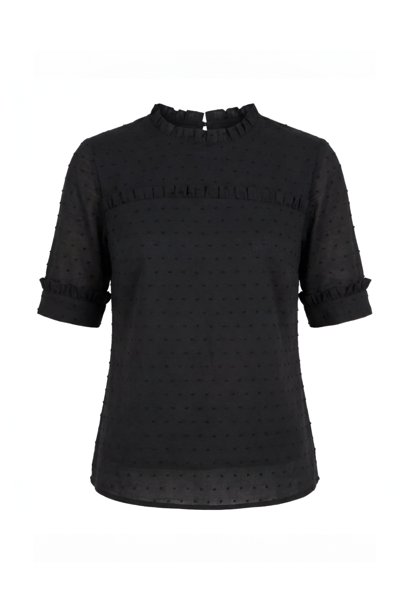 O frescor e beleza em uma só blusa. Detalhe franzido na região central, gola e punhos, que dão toda a elegância ao modelo.