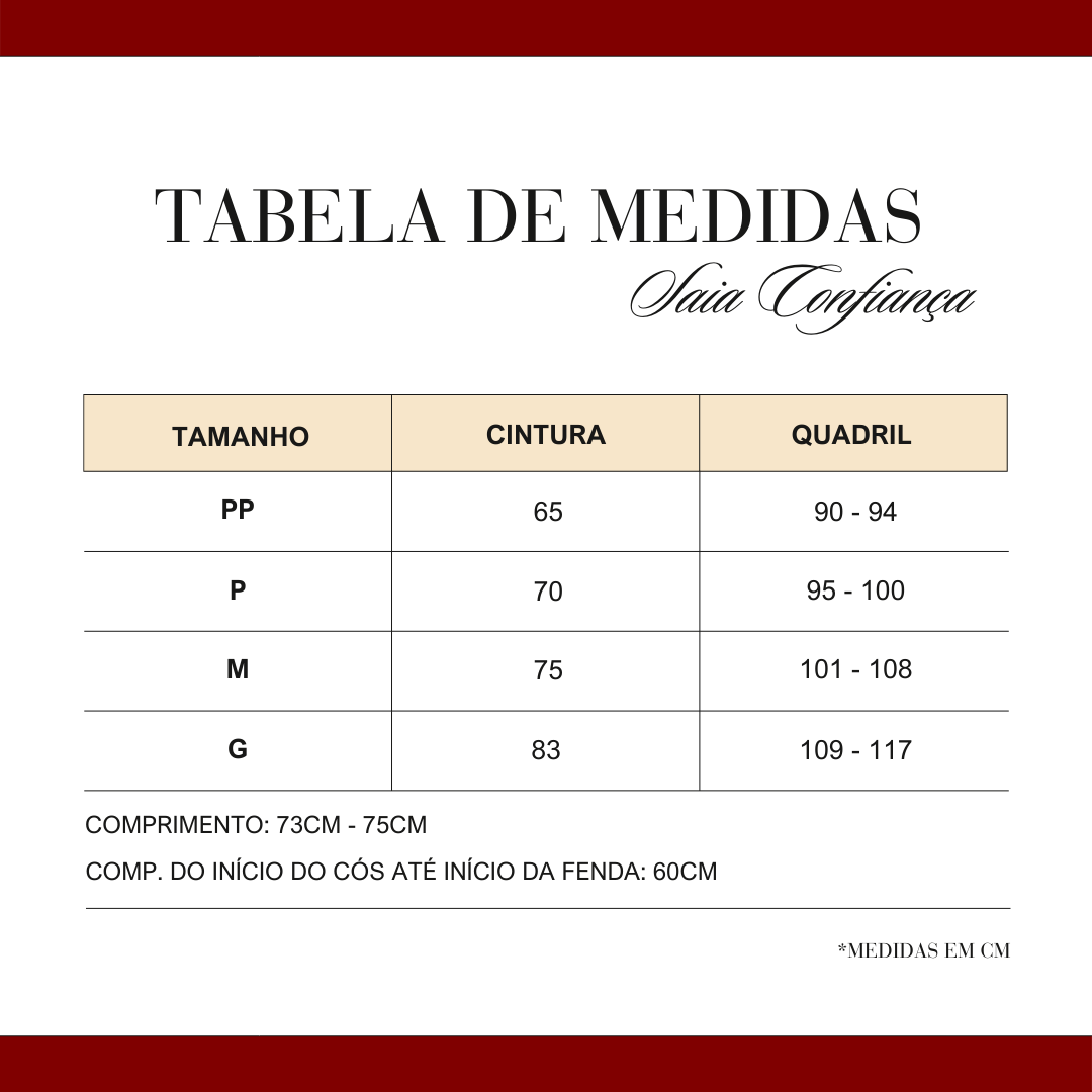 A Saia Confiança carrega a força de um detalhe que faz a diferença. Com a mesma modelagem da Saia Elegância, ela se destaca pela estampa pied de poule nas tonalidades preto, branco e vermelho, que imprime personalidade e segurança ao visual. O corte reto garante estrutura sem marcar o corpo, enquanto o transpassado frontal adiciona dinamismo à composição. Os bolsos invisíveis mantêm a funcionalidade discreta, e o forro em viscose proporciona conforto e acabamento de qualidade.